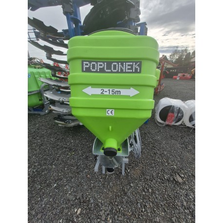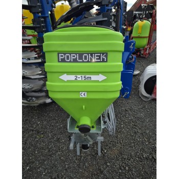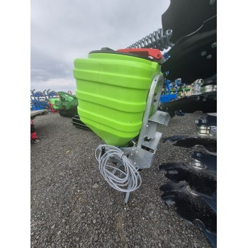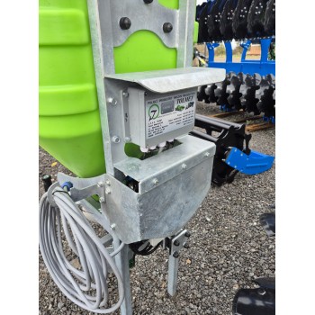 Přísev meziplodin Tolmet o šíři výsevu až 15m, masivní pozinková konstrukce, obsah 100l, plné nastavení množství osiva, elektrické ovládání motoru na 12V, včetně ovládacího modulu z kabiny traktoru, úchyt na rám vašeho stroje je přírubou, která je součástí přísevu.